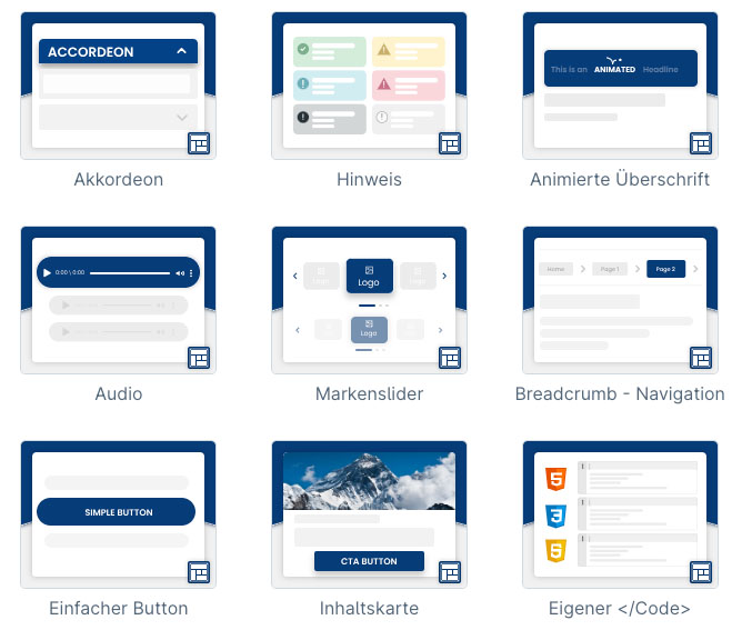 CMS-Elemente können mit verschiedenen Animationen versehen werden. Z.B. Fade, Zoom etc.