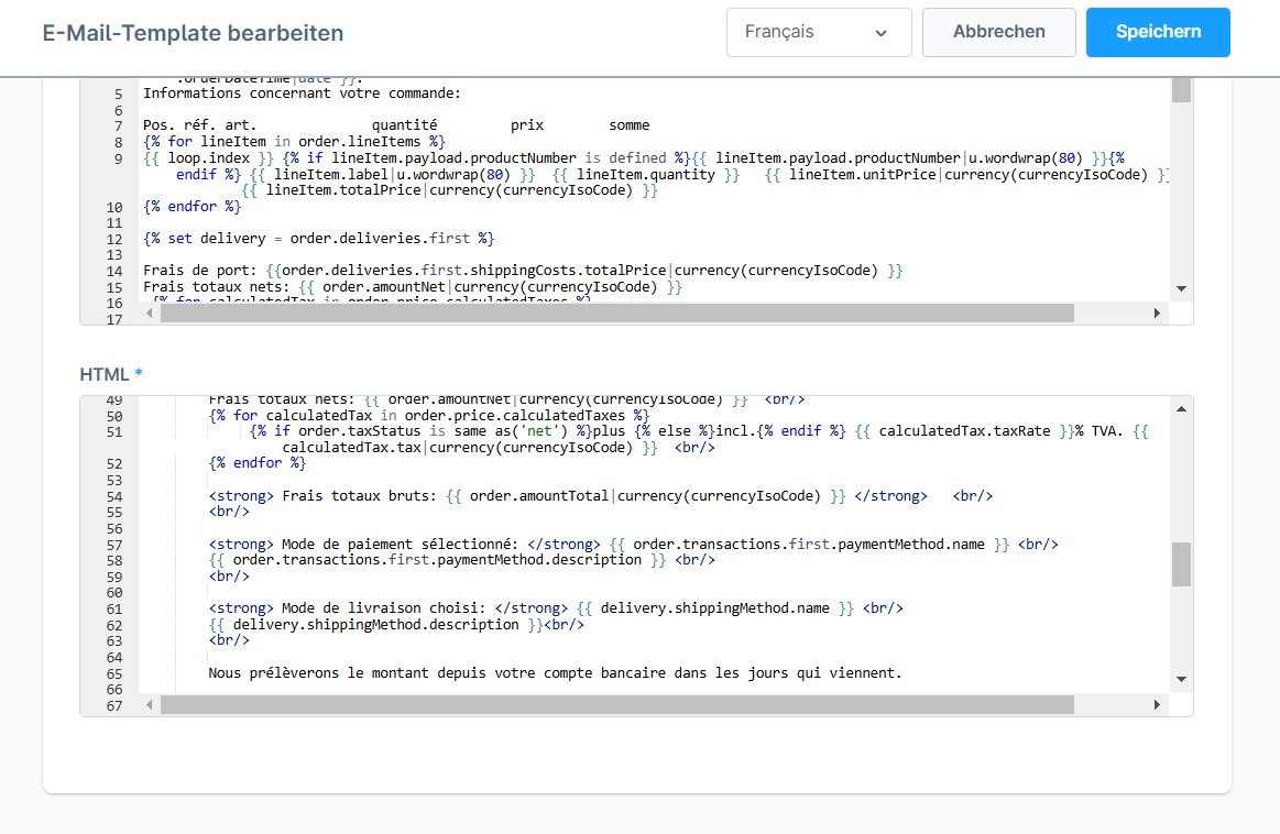 Sobald das Plugin installiert ist, findest du in den E-Mail-Templates der jeweiligen Sprache die übersetzten Vorlagen, die du nachträglich individuell anpassen kannst.